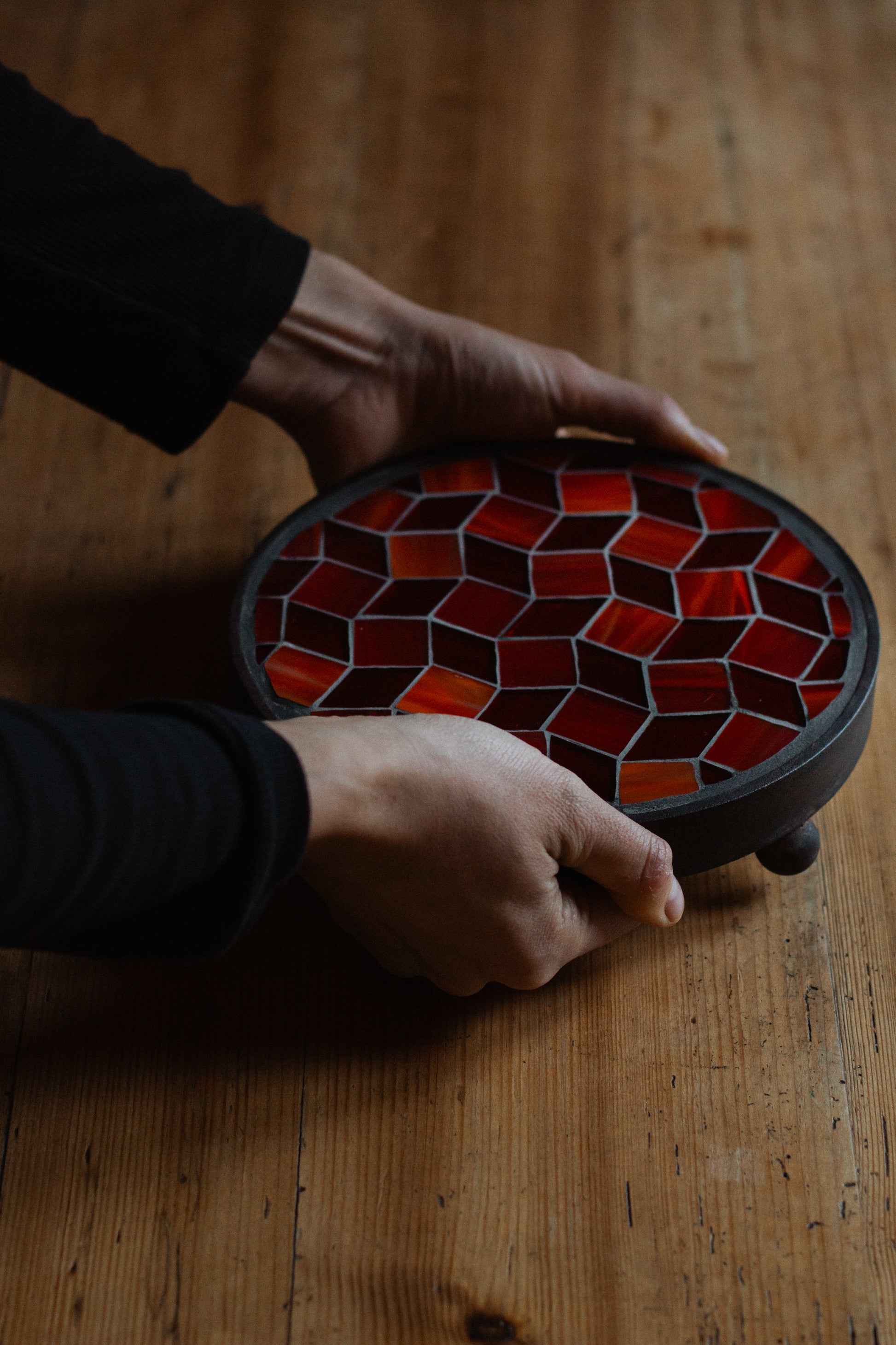 **AKTION** Runder Untersetzer mit Glasmosaik *kleiner roter*