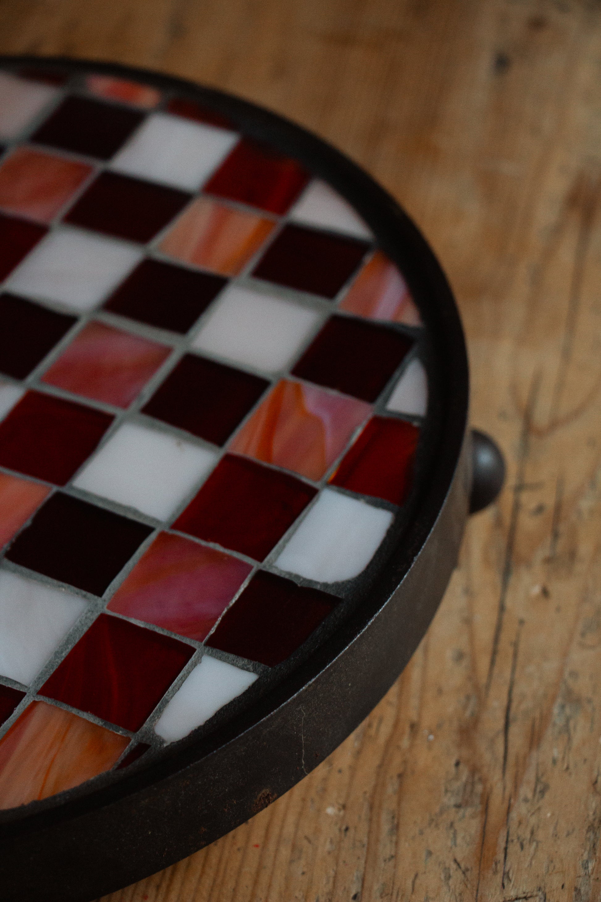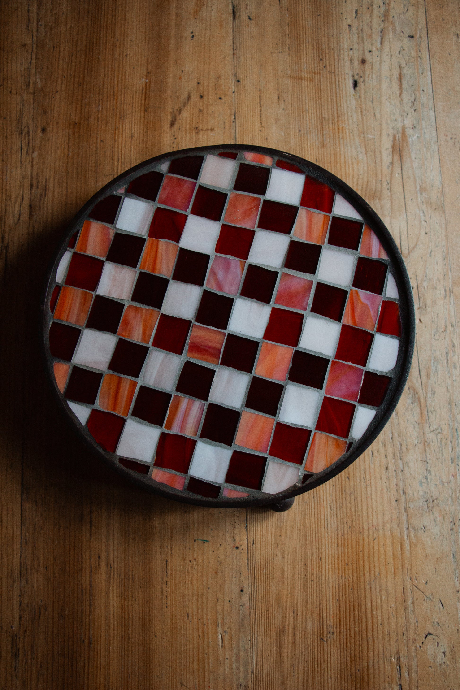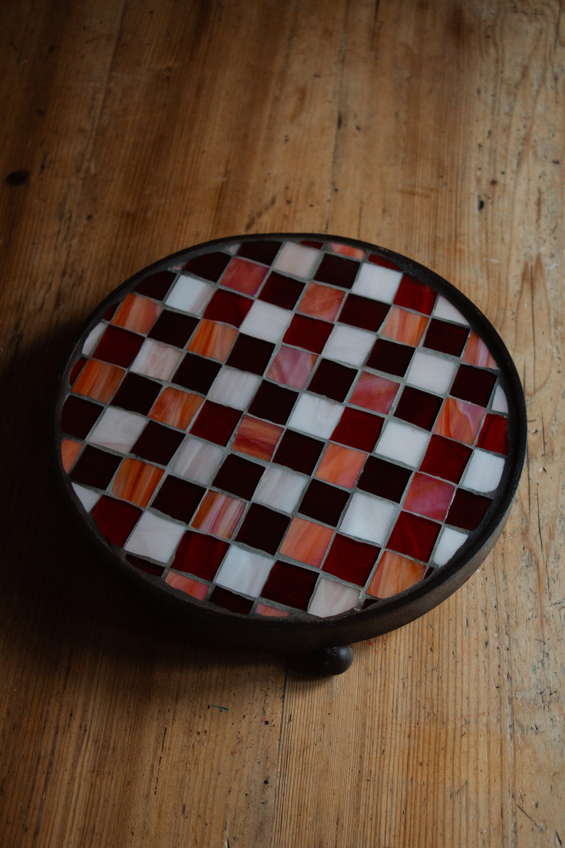 **AKTION ** Runder Untersetzer mit Glasmosaik rot weiß kariert